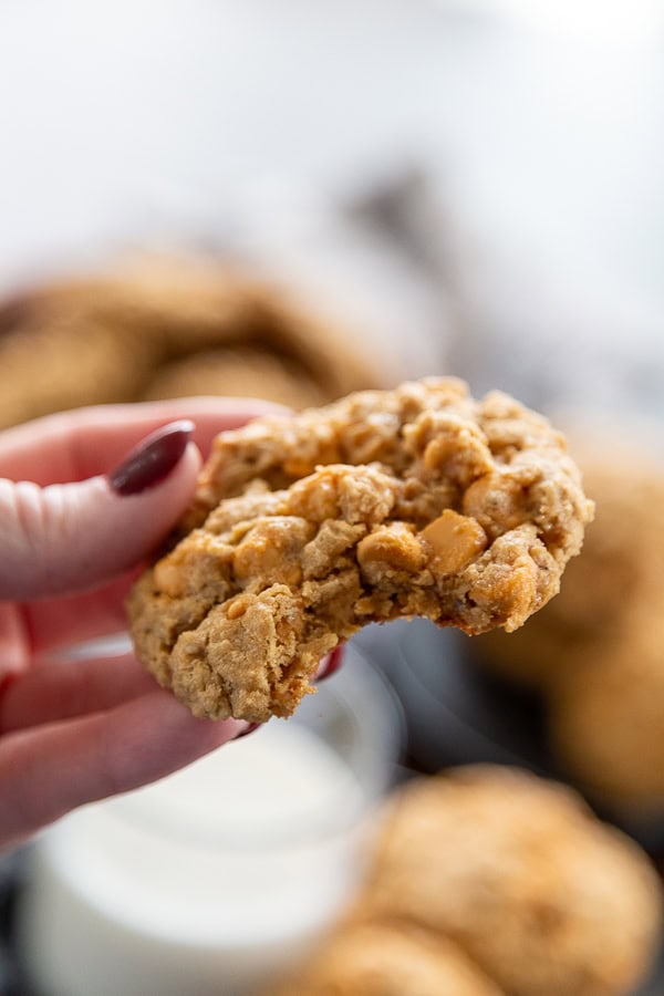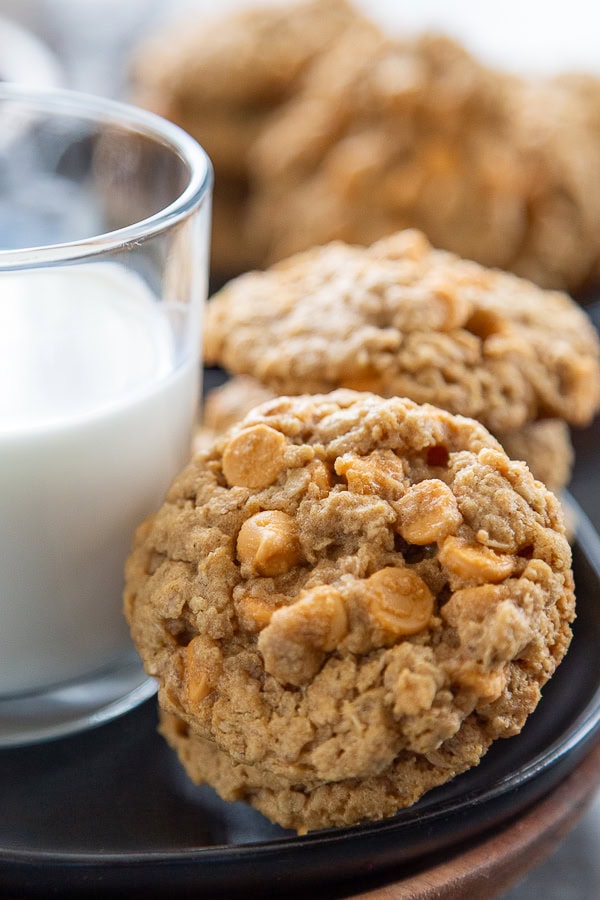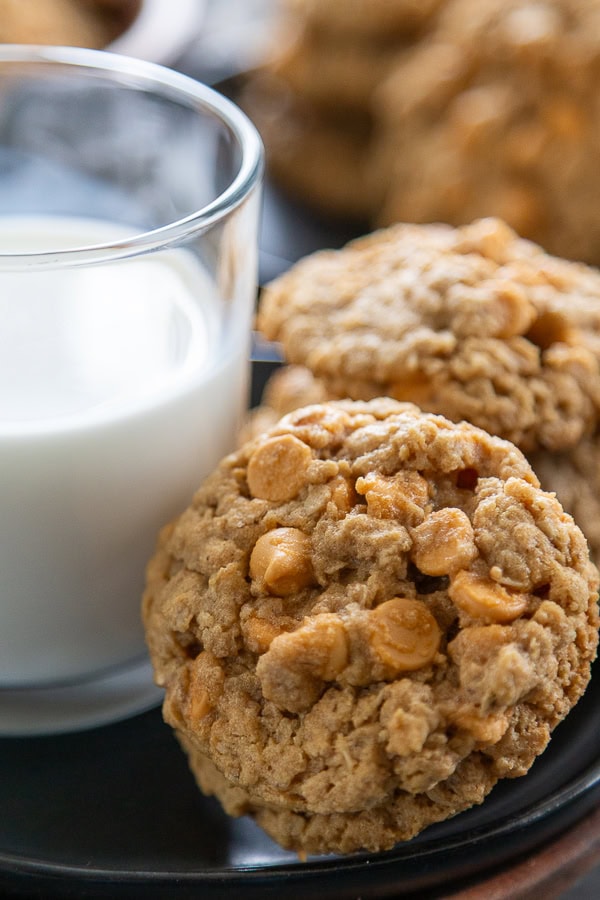 Grab a glass of milk and get ready to devour 1, 2 or 5 of these Chewy Oatmeal Peanut Butter Butterscotch Cookies.