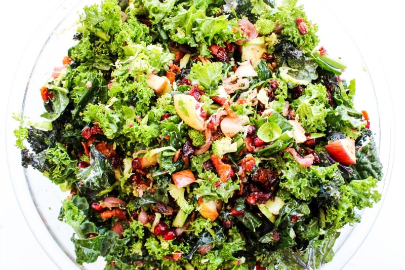 Winter Kale Super Salad is a gorgeous salad perfect for the holidays. It is full of nutrients, and fantastic flavor, and it makes enough to feed a crowd.